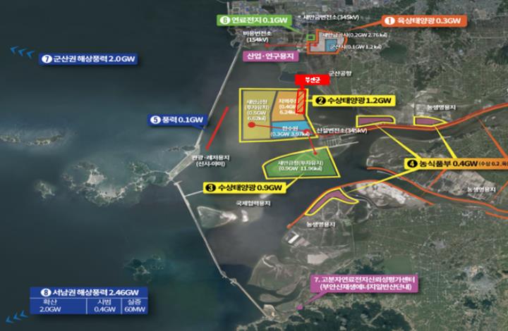 새만금 지역주도형 수상태양광 발전사업은 새만금개발청으로부터 100MW씩 태양광 발전사업에 대한 사업 권리를 부여받은 4개 지자체(전북특별자치도, 부안군, 김제시, 군산시)가 추진하고 있으며 군은 배분된 100MW 수상태양광 발전시설을 조성하고 발전소 건설 후 20년간 발전소를 운영할 사업자를 선정하는 사업이다.