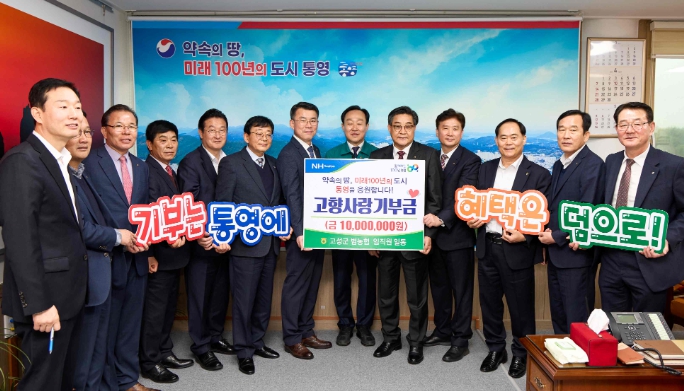 [뉴스서울] 통영시는 지난 3일 NH고성군지부와 고성 5개 농·축협(동고성, 고성, 고성동부, 새고성, 고성축협) 임직원 100명이 고향사랑기부금 1000만원을 기부했다고 밝혔다.