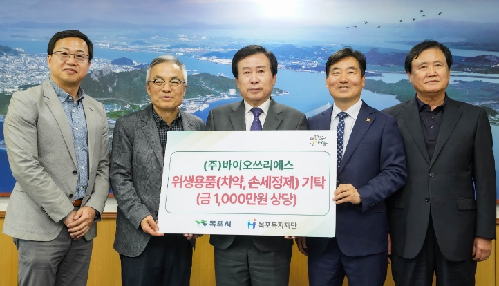 [뉴스서울] ㈜바이오쓰리에스는 지난 12일 목포시 저소득 가구 및 사회복지시설에 치약, 손세정제, 구강청결제 1,310개(1,000만원 상당)를 목포복지재단에 지정기탁했다.