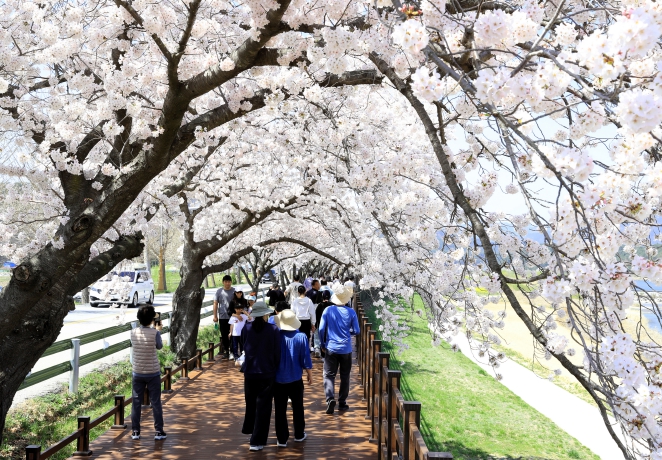 주말을 맞아 가족과 함께 나들이를 나온 근남면의 주민은 “예전에는 차로 지나가면서 보거나 차를 세우고 위험하게 벚꽃을 봐야 했는데, 이렇게 잘 만들어진 길을 안전하게 걸으며 벚꽃을 즐길 수 있어서 아이들과 나들이 하기에 좋은 장소인 것 같다”라고 말했다.