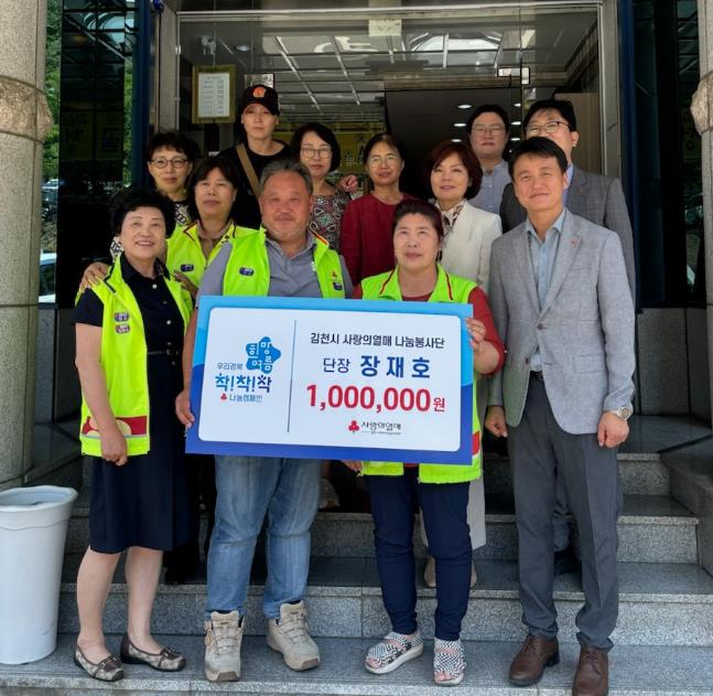 [뉴스서울] 김천시는 지난 12일 장재호 신임 사랑의열매 나눔봉사단장이 '희망 여름 착!착!착! 캠페인' 성금 100만 원을 전달했다고 밝혔다.