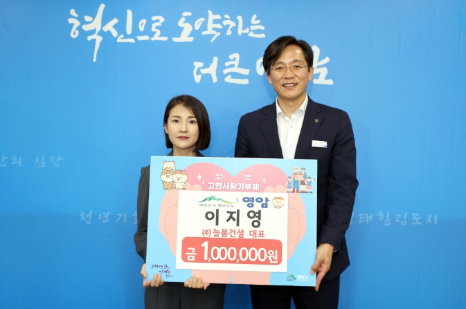 [뉴스서울] 이지영 늘봄건설 대표가 20일 영암군청에서 고향사랑기금 100만원을 기부했다.