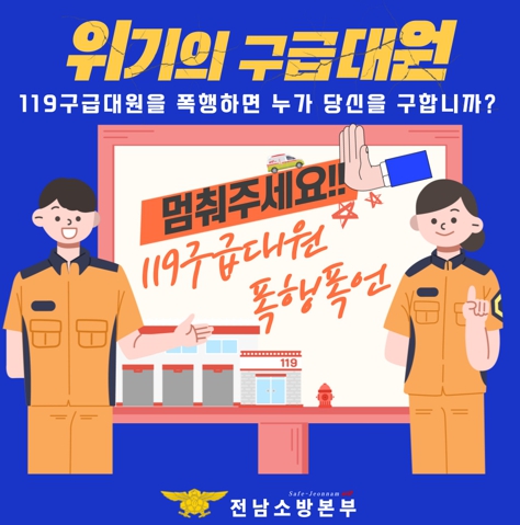 이에 소방서는 구급대원에 폭행 피해 근절을 위한 ▲ 소방 특별사법 경찰 운영 ▲ 안전모, 다기능 조끼, 웨어러블 캠 등 예방·대응 장비 보급 ▲ 폭행피해 장비 적극 활용 및 예방·대응 교육 ▲ 폭행피해 대원 심리치료 지원 등을 운영하고 있다.