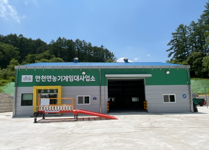 군내에서 6번째로 문을 연 안천면 농기계임대사업소는 총 13여억 원의 사업비가 투입되어 안천면 백화리 2,449㎡의 부지에 창고시설과 사무실을 갖추었다.