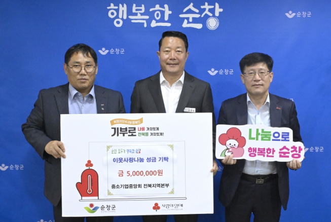 [뉴스서울] 중소기업중앙회 전북지역본부는 지난 24일 순창군청을 방문해 어려운 이웃을 위해 써달라며 온누리 상품권 500만원을 기부했다.