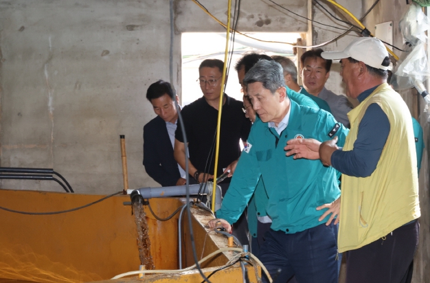 이강덕 포항시장은 22일 고수온으로 양식어류 피해가 발생한 남구 구룡포읍에 위치한 양식장을 방문해 피해 어업인들을 격려하고 고수온 대응 상황을 점검했다.