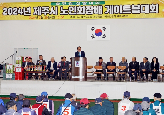 [뉴스서울] 강병삼 제주시장은 3월 29일 제주복합경기장 전천후 게이트볼장에서 열린 2024년 제주시 노인회장배 게이트볼대회에 참석해 어르신들에게 감사와 존경의 뜻을 담은 축하의 메시지를 전했다.