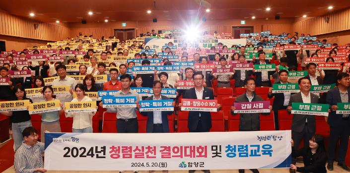 [뉴스서울] 함양군은 지난 20일 오후 4시 문화예술회관 대공연장에서 공정하고 청렴한 함양을 만들기 위해 전 직원 청렴 실천 결의대회 및 청렴 교육을 하였다.