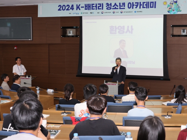 [뉴스서울] 포항시가 8일 포스텍 국제관에서 대한민국 미래 먹거리를 책임질 이차전지 꿈나무 양성을 위한 ‘2024 K-배터리 청소년 아카데미’를 개최했다.