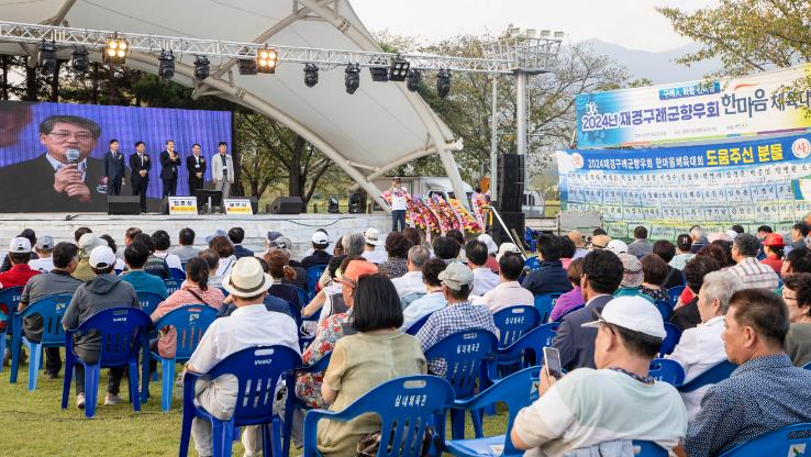 이튿날 치러진 체육대회에서는 각 읍면 출신 향우와 읍면민이 한 팀을 이뤄 줄다리기와 이어달리기를 비롯한 8개 종목 경기를 함께 하며 우애를 돈독히 다졌다.