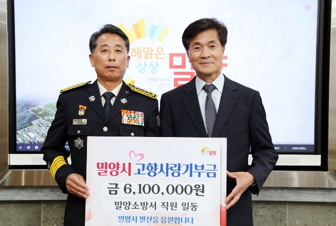 [뉴스서울] 밀양소방서(서장 최경범)는 지난 22일 시청 시장실에서 밀양소방서 직원들의 마음을 담은 고향사랑기부금 610만원을 전달했다.