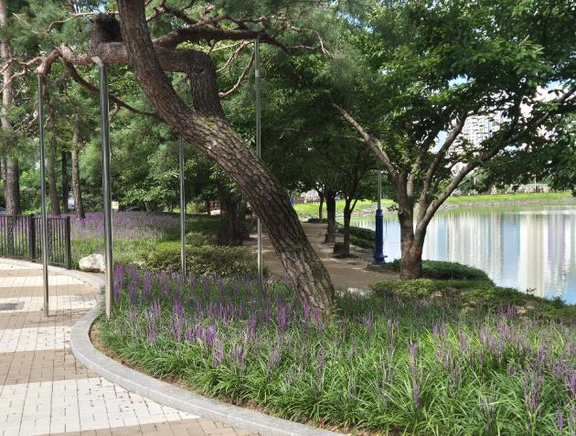 또한, 망정우로지공원을 이용하는 시민들에게 아름다운 볼거리를 제공하기 위해 산책로 주변으로 맥문동을 식재했으며, 현재 화려하게 개화한 상태로 은은한 맥문동 꽃향기가 산책하는 시민들의 지친 일상에 활력을 주고 있어 힐링 산책길로 각광받고 있다.