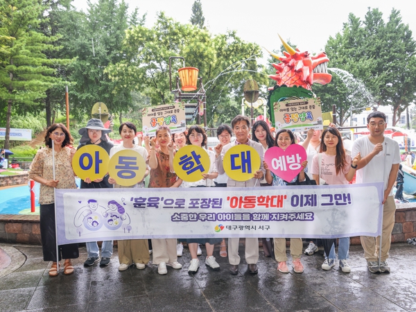 [뉴스서울] 대구 서구는 지난 7월 27일 이현공원 물놀이장에서 아동학대 예방 캠페인을 실시했다.