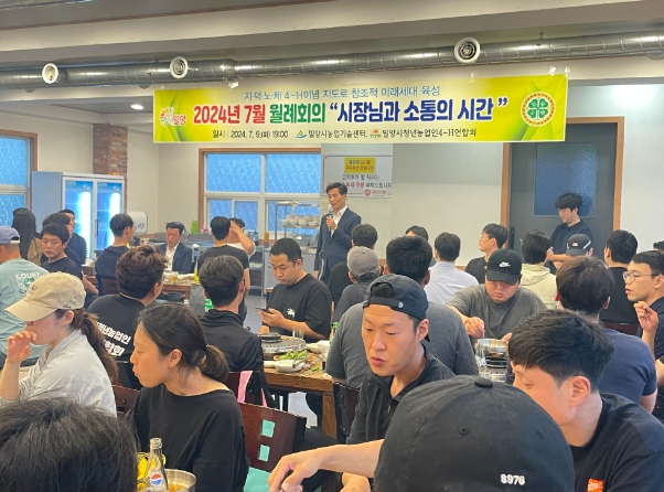 [뉴스서울] 안병구 밀양시장은 지난 9일 저녁 지역 내 식당에서 열린 밀양시청년농업인4-H회(회장 박도현) 7월 월례회행사에 참석해 청년 농업인 60여 명을 격려하고 소통하는 시간을 가졌다.