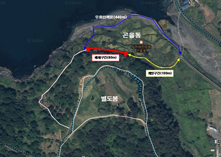 별도봉 곤을동 구간은 지난해 10월 미개설 산책로 조성을 완료해 해안변 산책로로 우회가 가능하며, 낙석위험구간은 계측기를 활용해 지속적인 모니터링을 실시할 계획이다.