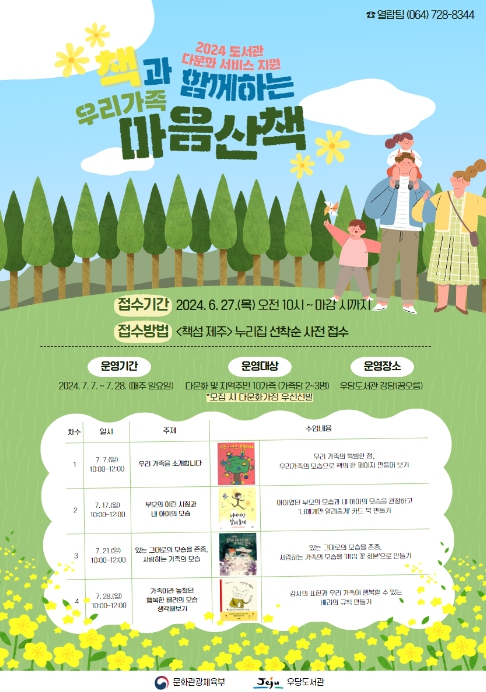 [뉴스서울] 제주시 우당도서관은 2024년 도서관 다문화 서비스 지원 사업인 '책과 함께하는 우리 가족 마음산책' 프로그램 참여자를 오는 6월 27일부터 모집한다.
