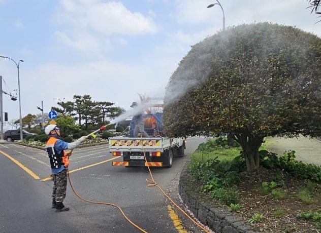 [뉴스서울] 제주시는 신대로 후피향나무 가로수의 건전한 생육 환경 조성을 위해 오는 10월까지 병해충 방제에 총력을 다해 나간다.