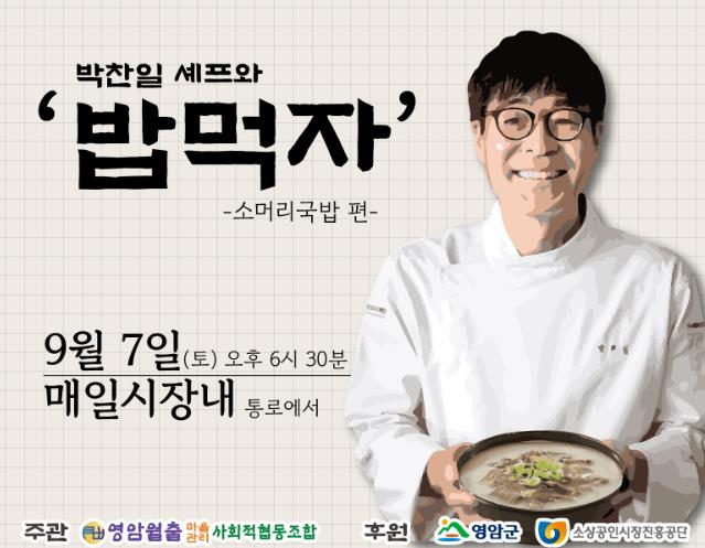 [뉴스서울] 영암군이 7일 오후 6시 30분부터 영암읍 매일시장 거리에서 대표 먹거리 개발 요리 콘서트 ‘박찬일 셰프와 밥먹자’를 개최한다.