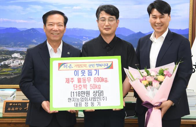 [뉴스서울] 거창군은 17일 현지농업회사법인(주)에서 이웃돕기로 제주산 월동무 600kg와 단호박 50kg(118만 원 상당)를, 아림인쇄사에서 어린이 공유냉장고 ‘꾸러기 천사 점빵’에 100만 원을 기탁 했다고 밝혔다.
