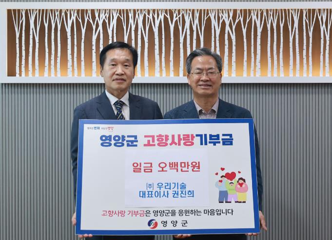 [뉴스서울] 주식회사 우리기술 권진희 대표이사가 영양군에 고향사랑기부금 500만원을 기탁했다.