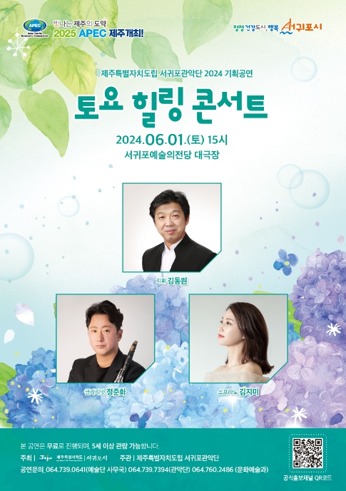 한편, 제주특별자치도립 서귀포관악단의 2024 토요힐링콘서트는 6월 공연을 마지막으로 상반기 공연을 마무리 짓고, 10월, 11월 공연으로 하반기에 관객들과 다시 만날 예정이다.