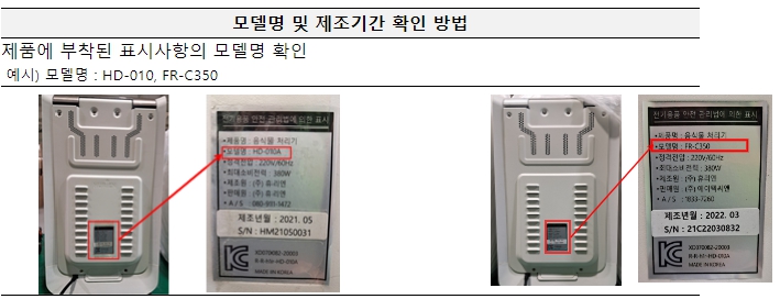 리콜 대상 제품은 뼛조각 등 단단한 음식물 쓰레기가 교반장치에 걸려 드럼통이 파손되고 드럼통에 내장된 열선이 손상되면서 화재가 발생할 수 있어, ㈜휴리엔이 개선된 드럼통으로 무상 교체를 실시한다.
