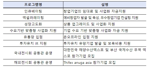 ▲ 부산센터 주요 지원 프로그램 목록 |
