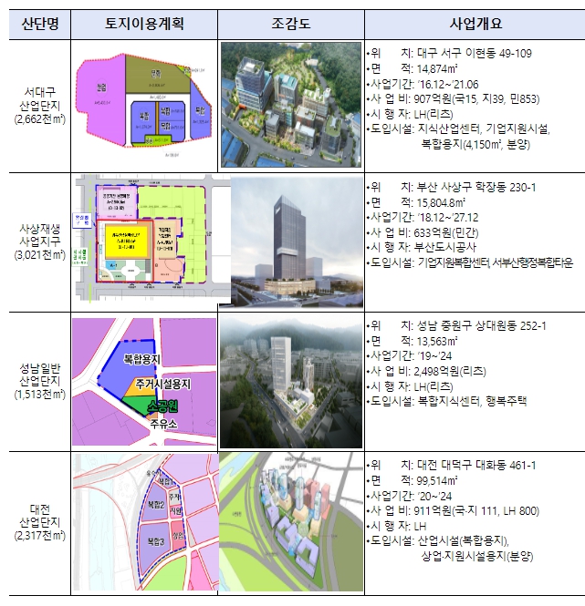 ’16년부터 도입되어 그간 서대구 일반산단, 부산사상 일반산단, 성남 일반산단 등에서 8개소가 추진되고 있다.