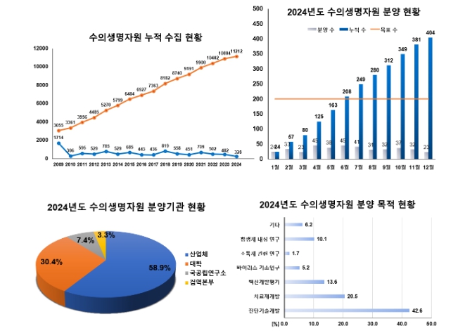 조윤상 검역본부 바이러스질병과장은 “2024년 사상 최대 분양 실적을 달성했지만, 여기에 안주하지 않고 더 많은 자원을 수집·분석·보존해 산학연 연구개발(R·D) 활성화에 기여하겠다.”라고 하면서, “앞으로도 국내 맞춤형 방역기술개발과 수의생명산업의 경쟁력 강화에 필요한 핵심 수의생명자원을 안정적으로 공급하겠다.”라고 말했다.
