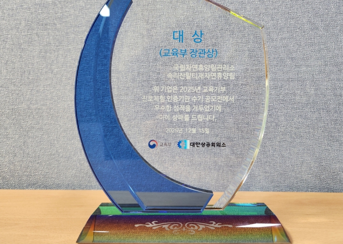 [뉴스서울] 산림청 국립자연휴양림관리소 속리산말티재자연휴양림이 교육부와 대한상공회의소가 주관하는 교육기부 진로체험 인증기관 수기 공모전에서 대상을 수상했다고 8일 밝혔다.