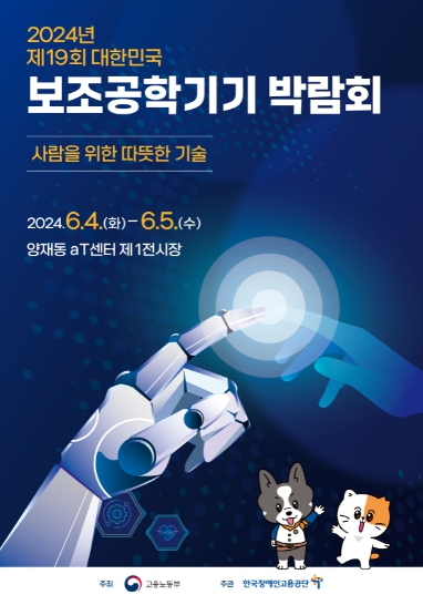 한국장애인고용공단은 ‘사람을 위한 따뜻한 기술’이라는 주제로 6월 4일 10:00부터 6월 5일 17:00까지 양일간 서울 양재동 한국농수산식품유통공사(aT)센터(1층 제1전시관)에서 ‘2024년 제19회 대한민국 보조공학기기 박람회’를 개최한다.