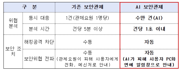 ▲ AI 사이버 보안관제 도입 후 변화 |