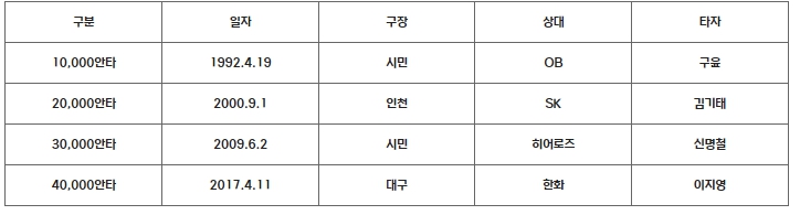 ▲ 삼성 10,000안타 단위 안타 일지 |