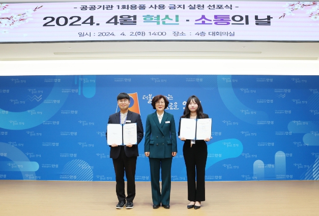 안성시는 지구를 지키는 작은 실천으로 2024년 4월 2일 공공기관 1회용품 사용 안하기 선포식을 개최하고 공공기관 1회용품 사용 안하기를 실천한다. 선포식은 안성시청 대회의실에서 공직자 100여명 참석한 가운데 진행됐으며, 안성시 공공기관 1회용품 사용 안하기 실천 선언문 5가지 항목에 대하여 약속하고 1회용품 사용 안하기를 선포했다.