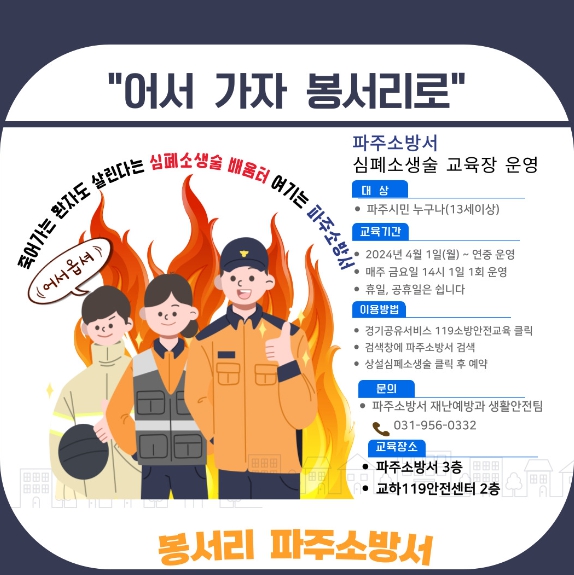 [뉴스서울] 파주소방서는 시민의 심폐소생술 응급처치 능력 향상을 위해 ‘상설 심폐소생술 교육장’을 운영한다고 15일 밝혔다.