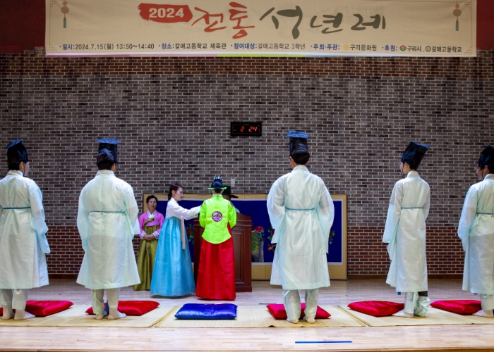 [뉴스서울] 구리시에서는 구리문화원이 7월 15일 갈매고등학교(교장 이홍근) 체육관에서 3학년 학생 200여 명이 참석한 가운데 ‘전통 성년례’를 개최했다고 전했다.