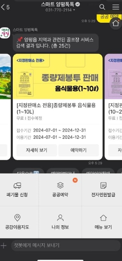 관내 291개소의 지정판매소는 스마트 양평톡톡으로 주문 접수와 대금 결재까지 진행하게 되며, 주문된 종량제 봉투는 군(청소과)에서 직접 판매소까지 배송하게 된다.