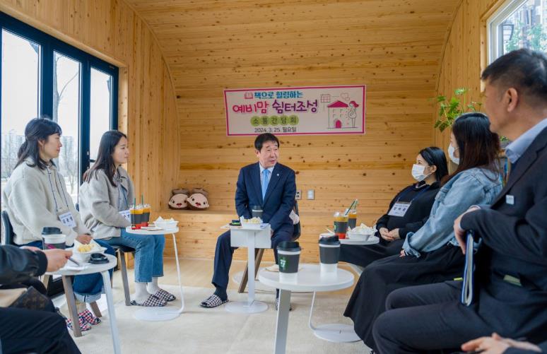 [뉴스서울] 이재영 증평군수가 25일 보강천 김득신 도서관에서 임신부 쉼터 조성과 활용방안 마련을 위한 임신부와의 소통의 시간을 가졌다.