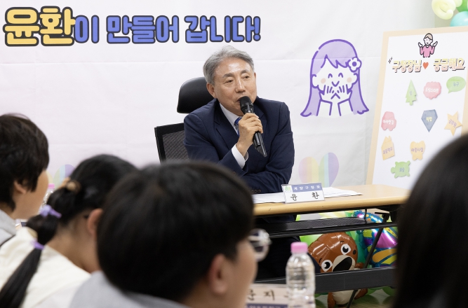 이날 윤환 구청장은 작전동 소재 계양구드림스타트 회의실에서 진행된 ‘환이와 함께하는 톡톡한 수다’를 통해 드림스타트, 지역아동센터, 다함께 돌봄센터 이용 아동 20여 명을 만났다.
