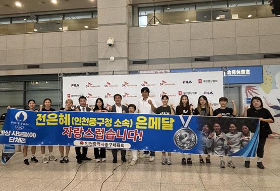 [뉴스서울] 인천광역시중구체육회는 지난 4일 2024 파리올림픽 펜싱 여자 사브르 단체전에서 은메달을 획득한 펜싱 국가대표 선수단의 귀국길을 축하하기 위해 인천공항으로 나섰다고 밝혔다.