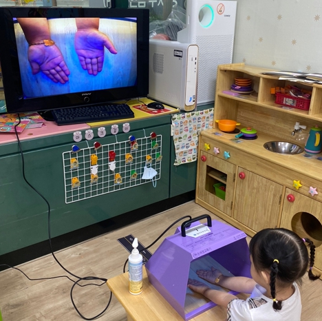 형광물질의 잔여 정도에 따라 손을 얼마나 올바르게 씻었는지 확인할 수 있어 올바른 손씻기 방법과 중요성을 효과적으로 교육할 수 있다.
