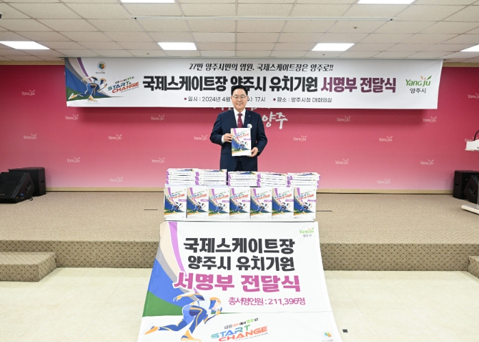 [뉴스서울] 강수현 양주시장이 지난 24일 시청 대회의실에서 ‘국제스케이트장 유치’를 기원하는 시민 서명부를 직접 전달받고 “유치 성공을 위한 우리 시의 열망을 오늘 충분히 보여줬다”며 하나의 목표를 향한 강한 의지를 밝혔다.