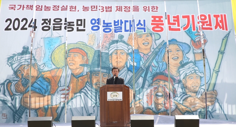 이학수 시장은 “농촌을 지키고 농민들의 권익 보호를 위해 항상 노력하는 농민회에 감사의 말을 전한다”며 “경제적 어려움을 불굴의 의지로 극복할 수 있도록 서로가 서로에게 힘과 용기를 주는 정읍만의 저력을 보여주자”고 말했다.