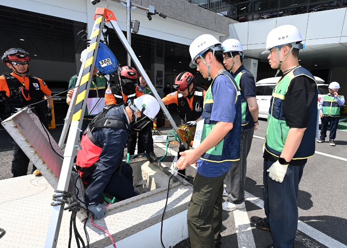 훈련은 남부체육센터 우수조에서의 질식 재해 상황을 가정해 실시됐다.이 곳에서 복합가스측정기·공기호흡기·송기마스크·삼각대 등을 활용한 긴급구조작업과 심폐소생술을 훈련함으로써 사고대응 역량을 기르는 데 초점을 맞췄다.