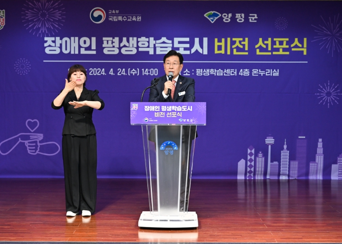 비전 선포식은 양평군이 2024년 장애인 평생학습도시로 선정됨을 기념하고 실질적인 장애인 평생학습권을 보장하기 위해 기획됐으며, 장애인 평생학습도시 경과보고, 축사, 비전 선포문 낭독, 현판 제막 순으로 진행됐다.