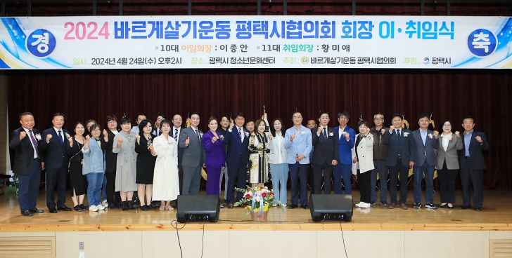 [뉴스서울] 바르게살기운동 평택시협의회는 지난 24일 평택시 청소년문화센터에서 ‘바르게살기운동 평택시협의회 제10대·제11대 회장 이취임식’을 개최했다고 밝혔다.
