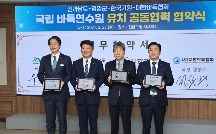 [뉴스서울] 영암군이 27일 전남도청에서 전라남도, (재)한국기원, (사)대한바둑협회와 ‘국립 바둑연수원 유치 공동협력 업무협약’을 체결했다.