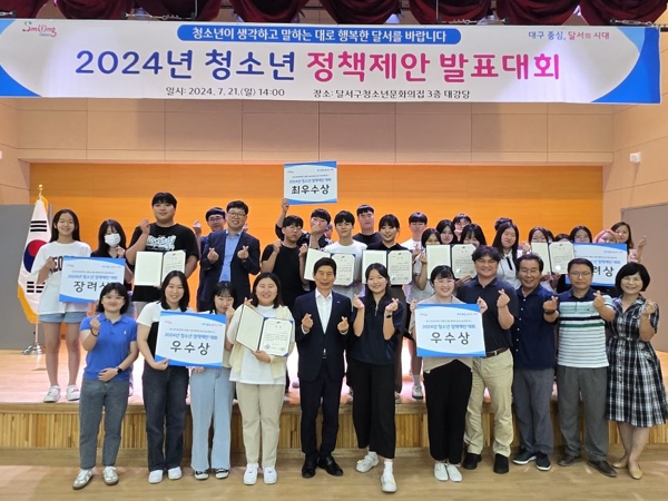 [뉴스서울] 대구 달서구는 지난 4월부터 7월까지 청소년의 시각에서 지역사회를 바라보고 필요한 사업을 제안 ․ 발굴하고자 실시한 청소년정책제안 대회에서 총 6건의 제안을 선정해 21일에 발표대회와 시상식을 개최했다.