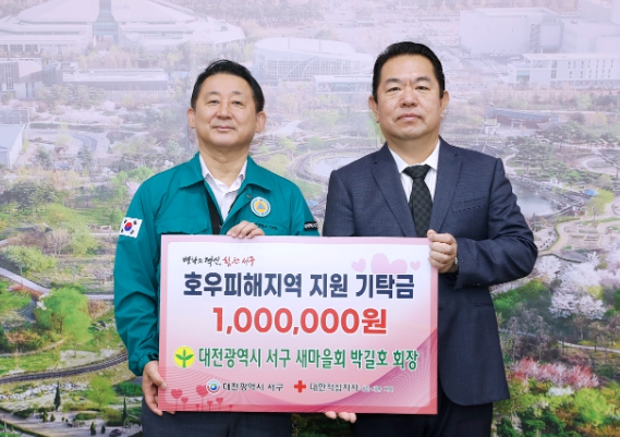 [뉴스서울] 대전 서구는 지난 17일 구청 갑천누리실에서 대전 서구 새마을회 박길호 회장으로부터 관내 호우 피해 지역 지원을 위한 성금 1백만 원을 대한적십자사를 통해 기탁받았다.