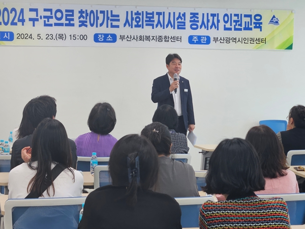 [뉴스서울] 부산 동래구는 지난 23일 부산사회복지종합센터에서 부산광역시인권센터 주관으로 동래구 소재 사회복지시설 29개소 종사자 70명을 대상으로‘2024 구·군으로 찾아가는 사회복지시설 종사자 인권교육’을 실시했다고 밝혔다.